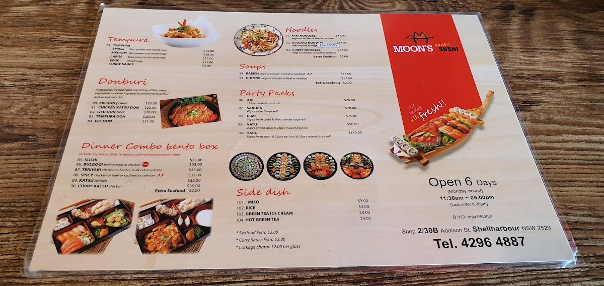Welcome to Moon's Sushi Shellharbour, a delightful culinary haven located at 30 Addison St, Shellharbour NSW 2529. With its prime position just a stone's throw from the waterfront, this charming spot invites you to indulge in a remarkable array of Japanese dishes.